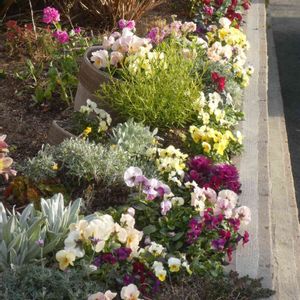 お山の上の工場前の花壇より 春花壇 柔らかくふくらむ