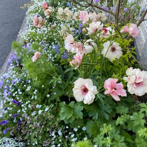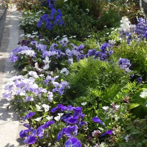 お山の上の工場前の花壇より ネモフィラとビオラ こうなるといいなと思い描いたように 広がりました ラクスパーアールグレイも 大きくなってきました♡