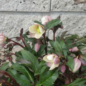 お山の工場前の花壇より クリスマスローズの季節♡ カンカン照りの真夏は ウエストリンギアの木の下で 静かに息を潜めて 冬から春は剪定されてスッキリした ウエストリンギアの下から 元気いっぱいに顔をあげる