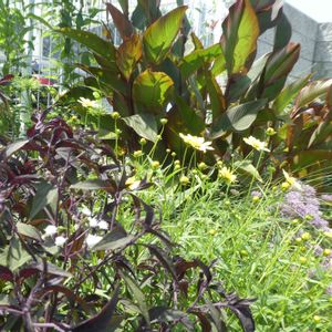 お山の上の工場前の花壇より 秋の始まり④ 涼しくなるのをまっていた ペチュニアや日々草も 息を吹きかえしました 銅葉のカンナはまだまだ カラーリーフとして サイズダウンしながら 置いておきます