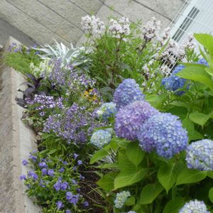 お山の上の工場前の花壇より おはようございます 今日から学校がはじまりましたね 息子も元気に行きました 以前とまではいかなくても 緊張がすこしでも少ない日常がもどって 身体や心をゆっくりと 今の日常にあわせていけると いいなぁと思っています 今年は ブルー、パープル、ホワイト多めに 気持ちよく、清々しく はじめて花壇に使った ペチュニアビスタの広がりも 楽しみです♪