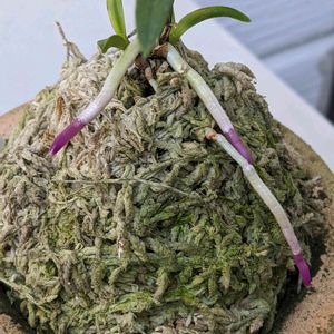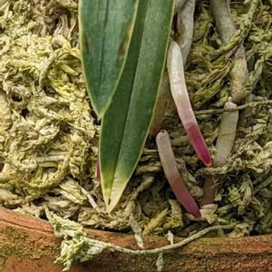 フウランのルビー根品種の天雅です。入手時に濃いルビー根とあったとおりきれいな根色です。