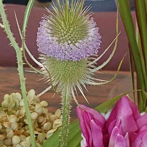 お花のアレンジメントです。 この変わったお花 チーゼルです。