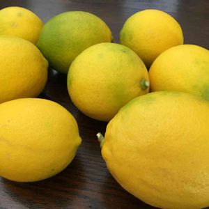 放置していたレモン🍋ですが、蕾が付いていたので収穫しました! 丸くて大きなレモンです長さは10cm,直径は9cmです。11個収穫です。😁