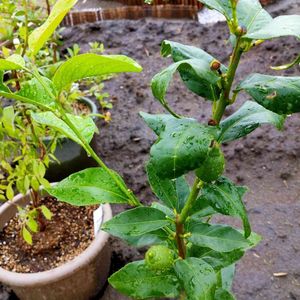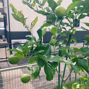 リスボンレモンをJAの植木コーナーで発見して、リベンジを始めました🍋 今回は初めから植木鉢で育てて、冬は軒下に避難させて冬を越そうと考えてます🤔 前回のリスボンさんと大きさも値段も大差ないけど、今回のリスボンさんは実が付いている😳 摘果•••した方がいいんだろうなと思いつつ、娘にとったら可哀想だと大反対されてます💧 このまましばらく様子を見ます、台風で折れませんように😅