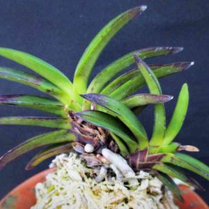 山採りフウラン白縞 愛媛県伊予市産 山採りのフウランで白い縞が入ります☺️採取者は湖東錦に似てその再来だとかと言います😆私はよくわかりませんが確かに白い縞が沢山入ってきれいです✨💕 神社のケヤキの木に着いていたと言われていました😃私と採取者しかもっていない風蘭です😊