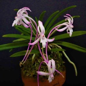 フウラン 愛媛県佐田岬半島産の赤花 南予でお仕事していたころ風蘭をたくさん作っているというご年配の方がいるというのでお伺いしました😆 そこには過去にその方が自分で採取した選別種がたくさんあり、「これいいね」というと「ほれ❕」と大株一鉢いただきました✨何故か植えられていた古いプラ鉢は「返してね」といわれたことを思い出します😆 佐田岬半島は九州に近いのかガッチリした木姿の風蘭多いです☀️花の紅色も県内トップクラスでした✨💕