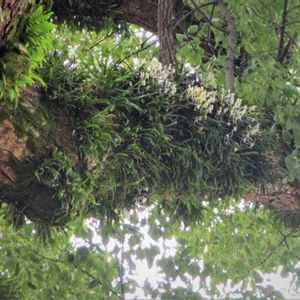 よーやく☔があがったので外に出れました😅 最初に行ったのはやはり県内一フウランの着生している巨木でした😆 少し、花が盛りを過ぎてました😢 自生地ではフウランとノキシノブが混生して花がないとわかりません😆