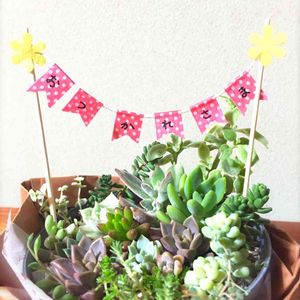 大仕事を終えた友達に寄せ植えのプレゼント( ¨̮ ) ラッピングを頑張った記念に一枚( ´͈ ᗨ `͈ )◞♡⃛