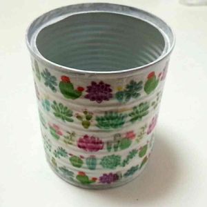 多肉模様のマスキングテープを見つけたので、はってみました。 簡単リメ缶です😊 センスないのでマスキングテープ任せです😅