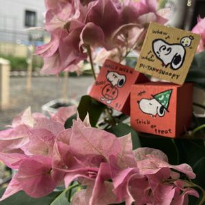 🏷毎月2日はスヌーピーの日 久々に激安園芸店に吸い込まれ(笑) 半額になった【ブーゲンビリア🌸】 ❤︎*⋆ᵍᵉᵗ⋆*❤︎ マイメロちゃんのHalloween🎃スヌーピーブロック添え✨ 2枚目 ブーゲンビリア全容🌸 3枚目 マイメロちゃんhandmadeのスヌーピー🥫✨ ハナゲは偶然の産物らしいょ🤣🤣🤣 白檀hairもいい感じꉂ🤣𐤔𐤔