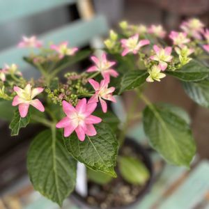 こんばんは ♪ 紫陽花の季節を 待ちわびて 小さな庭に お迎えした ダンスパーティー *゚✲ฺ︎ まだまだ小さな苗 🌱 成長が楽しみ です ♬︎*.:*