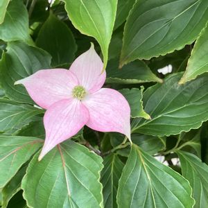 おはようございます 今日は朝からザーザーの雨☔です 庭のヤマボウシ 咲きました 今年は 花が4個しか見当たりません😂 どうしたのかな? 枝の詰め方 間違った?