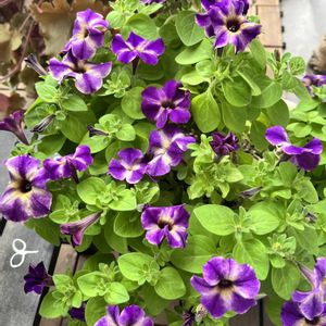 こんにちは✨今日は☔️です 1️⃣冬越しした☺️サントリーサフィニアアート・ブルーモーメントの花数が増えてきました🎵 2️⃣こちらも冬越ししたPWスーパーベルレモンスライス✨去年より株が、モリッとなって😆花が咲いて嬉しいです😄 3️⃣先月買った🍀サントリーサフィニア・ラベンダーレース✨花が咲きました😊落ち着いた綺麗な色です🥰