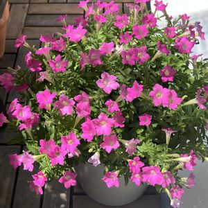 おはようございます〜😆 毎日暑いですね〜😅 ①ペチュニア アマゾナス🤍💚 ②ペチュニア ブルーモーメント🤍💙 ③ニーレンベルギア ブルー💙💙 ④⑤湘南ヴェルデ3種🤍🩷💚 昨年欲しかったペチュニアアマゾナス、今年は何処にでも売っていて拍子抜け〜😅⤴️🎉 育てられて嬉しいです〜😄🤍💚 2年目のブルーモーメントは、モリモリ過ぎの咲きっぷり〜😍🤭🎉 今日、切り戻しをしました〜🤣 3年目のニーレンベルギアも、数回の摘芯後の開花です〜😆🎉 このパフォーマンス凄い~🤭⤴️ 湘南ヴェルデ3種、綺麗に咲いてくれて一安心〜✌️👏🎉 この暑さでは、切り戻しは必須ですね〜🤣⤴️ 今夏、これからの猛暑で、どれだけの株が枯れるか心配〜😅