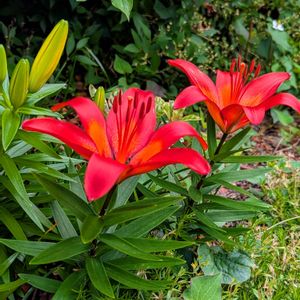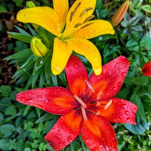 昨日の雨も上がり今朝 矮性の黄色いスカシユリも咲きました✨ 赤いスカシユリと一緒に見られないかと心配しましたが何とか間に合いました😊