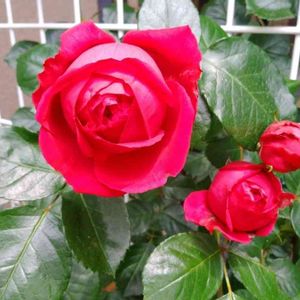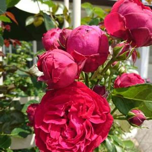 ルージュ ピエールドウロンサール 🌹 つるバラを植える場所がないのに買ってしまい、 HTバラの王妃アントワネット🌹を、引っこ抜いて、鉢に植え替え、空いたところにルージュさん【つるバラ】を🌹