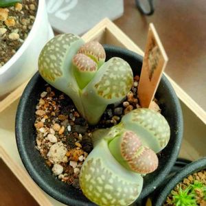 リトープス属 福来玉・花紋玉・李夫人🌱 実生の日🌱 昨年の6月から数え始めて⑥回目の水やりを昨日しました😊 まだ完全に脱皮が終わってない子もいるようですが、空気も乾燥してて「もう待てない!」と見切り発車💦どうなんだろう😅ちょっと様子見です🤭 「たっちんのリトープス」タブをタップでこの子たちの生長記録のみどりのまとめが簡単に見れます😊🎵