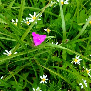 🏷日曜日は日本を感じる和の花 大紫露草がたくさん咲いて、綺麗です🌿💜🌿😃 ②ピンク色の紫露草🩷🌿😍 ③先週、栴檀の神社で見つけた、常磐露草🤍🌿ちっちゃくて、可愛い!😍