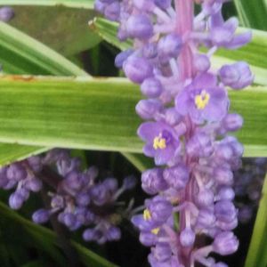 斑入りヤブラン 薄紫の花穂があがった。 斑入りの葉がやさしく包む。