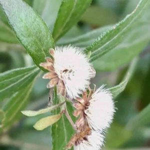 ノコンギクの綿毛 庭の隅で刈り残されたノコンギクが、小さな綿毛を付けていた。 GSの投稿で、綿毛ができる事を知ったから、探してみたの。 初めて、知ること、たくさんあるね。