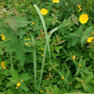 今日の花、キンシバイの花です。 黄色いキンシバイの花が綺麗にたくさん咲いていました。黄色い花が満開になって、キンシバイの花が綺麗です。