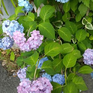 今日の花、アジサイの花です。 家の庭に、ピンク、ブルーのアジサイの花が綺麗にたくさん咲いています。 アジサイ アジサイ科 🐌もうすぐ梅雨ですね。