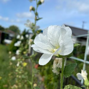 🏷️今日のお花 🏷️木曜日は桃色 参加させて頂きます🎶 7月19日撮影 タチアオイ🤍 お花は小さくなったけど、透き通ってキレイ✨😆 ナゾの薬草園 ムクゲ🩷 蜜が甘いのかな🥰 🐜さんが集まってくるね😳 虫の苦手な方ゴメンなさい💦 今日も暑いけど💦 頑張りましょう🔥٩(ˊᗜˋ*)و!