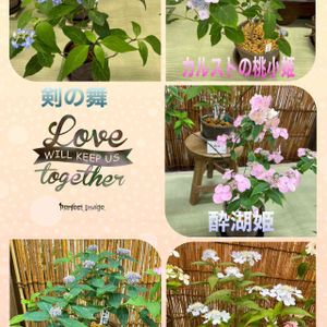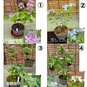 ヤマアジサイ その22 1,中津の星空 高知県 詳細は分からなかったです。 2,雪しぐれ 佐賀県 斑入りの葉が素敵ですが詳細は分からなかったです。 3,森藍絞り 大分県 濃い青紫の花びらに、白色の絞りが明瞭に入ります。小型ながら花色が濃く独特なためとても目につく品種です。 4,白鳥 静岡県 装飾花が八重咲きになるヤマアジサイで、よく見ると小さな両性花まで八重咲になります。白く清楚な花弁と濃緑の葉とのコントラストも美しいです。 鎌倉アジサイ同好会作品