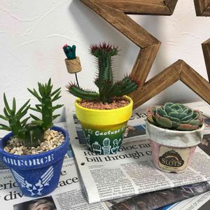 🌸こんばんは🌸 先日の木工クラフト市での戦利品 左からセバスたん様のミリタリー鉢に将軍🌵 新作のミリタリー鉢大きいのがいいなー😄オーダーしたい🤗 mokoさんのカクタス鉢に紅彩閣🌵ちょと触っただけで白い樹液攻撃された😅危険危険 配色がお気に入りです👍 桃子さんの鉢には七福神🌵優しい桃子さんは弁天様かな😄