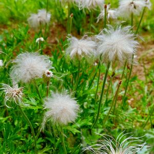 タカネハンショウヅル 高嶺半鐘蔓 キンポウゲ科 センニンソウ属 花後の姿です。 綿毛になって 黒い種が飛び立つ所でした🍃 お花の写真は昨年10/14に。