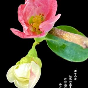 【季節の花華シリーズ;木瓜の花】 🌺ボケ:木瓜の花;Flowering quince 📝異常な天候のせいかな⁈ 季節外れに咲いていたボケの花デス⁉︎ 📝ボケ(木瓜)の名の由来は、その果実が瓜;ウリに似ていることからきています。 中国名で「木瓜」と書かれ、「もっか」や「もけ」と読まれたものが、時代とともに変化して「ぼけ」になったというのが定説です。 ♧果実が瓜に似ていることから:果実の形が瓜に似ているため、「木に実る瓜」という意味で「木瓜」という漢字が当てられました。 ♧読み方の変化:「木瓜」が中国音で「もけ」と読まれ、それが日本語で転訛して「ぼけ」という読み方が定着したとされています。 ♧別名:中国からの渡来植物であることから、「唐木瓜(カラボケ)」という別名もあります。 【一歌献上】 「ボケの花 *魅惑の恋を連想す 紅白並び仲むつまじく」 @訳意; When I see the intimate red and white flowers of the Japanese quince lined up together, it brings to mind the image of a fascinating love. ✍️Works;Poetaster Kazyan Doe.,/;筍歌人;藪中和堂 🌺ボケの花言葉; ♡「先駆者」・「早熟」: 厳しい寒さの中で他の花に先駆けて咲くことから、新しい始まりや才能を象徴します。 ♡「平凡」: 庭の生垣や比較的小さな庭に向いていることから、身近で変わらない存在を意味します。 ♡「熱情」: 赤い花を咲かせることにちなみ、情熱的なイメージを表現します。 ♡「*魅惑的な恋」・「妖精の輝き」: 多様な花の色や形から、人を惹きつける魅力やロマンチックな美しさを連想させます。 ♡「指導者」: 織田信長が木瓜紋を使用していたことに由来し、力強いイメージを象徴します。 📖ボケ:木瓜/豆知識; 学名;Chaenomeles speciosa ;バラ科ボケ属 英名; @Japanese quince: 日本のマルメロを意味し、 ボケの別名としてよく使われます。 @Flowering quince: 「花を咲かせるマルメロ」といった意味合いで、学名の「quince(マルメロ)」に「花を咲かせる」という特徴を付け加えた名称です。 @Japonica: ボケ属 (Chaenomeles) の植物全体を指す場合がありますが、ボケを指すこともあります。 @中国原産の植物であることから「Chinese flowering quince」と呼ばれることもあります。 《ボケの実の利用》 ボケの果実にはクエン酸、酒石酸、リンゴ酸などの有機酸類と果糖が含まれていて、有機酸類には制菌作用があるとされ、腸内が酸性化するほど多く内服すると、細菌は弱アルカリ性(pH7以上)で繁殖するため増殖を止める働きがあるといわれる。 また、有機酸類には鉄分の吸収促進に役立つとも考えられている。 果実は木瓜(もっか)と称される生薬になり、8 - 9月ごろの落果する前の青い未熟果実を採取して、水洗い後に輪切りにしたものを天日乾燥して調製される。 補血、強壮、疲労回復、咳止め、食あたりのほか、筋肉のひきつり(腓返り)、暑気あたりに効用があるといわれ、乾燥果実1日量5 - 10グラムを水200 - 600 ccにて半量になるまで煎じて、3回に分けて服用する用法が知られている。 ただし、胃腸に熱があるときは禁忌とされる。 香りのよい果実を使って、果実酒やジャムにも利用される。ボケ酒と呼ばれる果実酒にすることもあり、果実の2 - 3倍量のホワイトリカーまたは35度の焼酎に漬け込んで、冷暗所に半年から1年置いて作られる。 果実酒にも咳やのどの痛み、疲労回復、滋養保健、低血圧、不眠症などの薬効があるといわれ、就寝前に盃1杯ほど服用される。 🖼️Artistic: Flowering quince flower//Kazyan’s Collection November 18,2025:past am 05:25’;upload