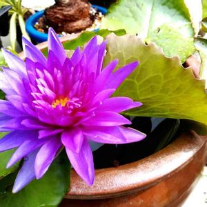 やっと咲いたーー㊗️🎊 熱帯スイレンの エドワードDウバー 去年、お迎えして、 はじめての冬越しして、 植え替えして、 やっと‼️ ツボミがあと3個も控えてて、 これから楽しみー😊💕 熱帯スイレンの冬越しは 難しそうでダメかもって 思ったけど、 バケツに入れて水はって、 玄関のクローゼットに 入れただけでした。 掘り上げ保管とか しなくても全然いけましたよー👍