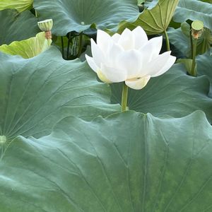 レンコンの花 🎶穴の空いたレンコンさん♪ 蓮の田んぼでも白色の花が咲いていました お正月のおせち料理に欠かせない蓮根