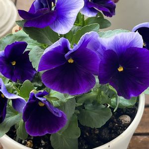 こんにちは✨ 1️⃣2️⃣ビーコンの色合いが綺麗で🎶じっと見ています👀 3️⃣4️⃣PWイテアスノーフィズの新芽が出てきました😊🎵成長がたのしみです✨ 5️⃣フリル咲きビオラ アデール☺️可愛い😆❣️
