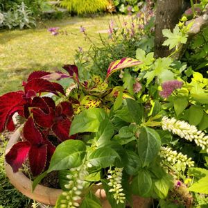 今朝1番に作った寄せ植え コリウス2色と、コバノズイナを合わせてみました✨️ その他、沢山鉢植えを切り戻して、肥料あげたりね。 1番大変な樹木剪定は現実逃避して、楽な楽しいことばっかりしてます。