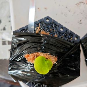 板付組の様子 ①リドレイ 新葉1枚 展開中。 ②バクテリア リドレイの横に掛けていたら 葉色が悪くなりました。 現在ジメジメ系のある位置にて療養中。 ③バルボフィラム 新芽…?