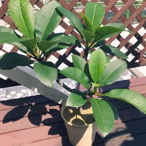 プルメリアはすごく元気‼️ 葉っぱがいっぱいになってグングン大きくなってます。 でも花はまだまだ咲かないかなぁ… 土からも鉢底からも根が出てきたので鉢を大きくしようと思ったら、カインズの店員さんからそのままで問題ないって。 どうしても植え替えるなら9月以降がいいです、だって〜