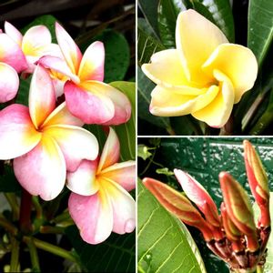 数年前、ピンクのプルメリアを購入し、毎年ピンク色の花が咲いていたのに 今朝開花したプルメリアを見て ビックリ‼️ 黄色に変化してたんです‼️ プルメリアって色が変化するんですか😳