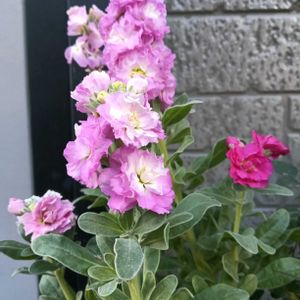 小さなお花が可愛い アンティークビオラのコリーナテラコッタ🧡 クリーム色のストック、 華あられ、ももかシリーズのミルクと寄せ植えにしています。