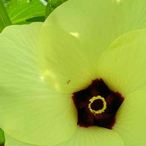 野菜にしておくにはもったいない、オクラのお花。✨ 小さなアリさんが来ていました。🎶 頑張ろう❗日本‼️ 👊✨
