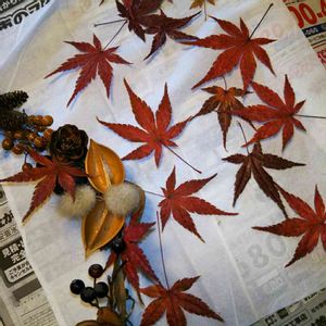 タウンページのもみじ🍁 押葉にしたのを思い出して 開いてみた👀 桐の実 殻と🍁合ってる🍂