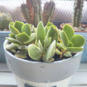 ワテルメイエリー! 冬に真っ赤なカット苗でお迎えしました。 お迎え後、葉挿しの細かい土の上で発根を待ったのですが、2ヶ月ほど経過して春になっても全く発根する様子がなく、かなりやきもきしました💦 このままじゃ枯れちゃう…😐と、一か八か鉢に植え、他の根がある多肉と同じように屋外で雨ざらしにしていたら、あっという間に発根! その後、完全に緑の春顔に変化! この過酷な気象条件の中、今も雨ざらし&陽ざらしで過ごしています(*˘︶˘*).。.:*
