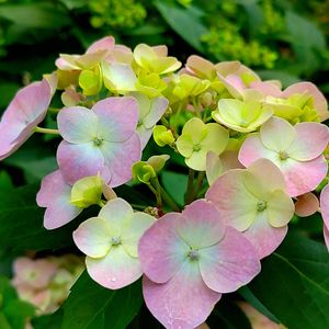 ラグランジア達は色付いてきました♪ 1.2.3. クリスタルヴェール2 可愛すぎ〜❣️花びら1枚を見ても色のグラデーションが!去年はピンク一色だったからね。嬉しい☺️クリスタルヴェール2は花それぞれでいろのグラデーションがあって、オーロランジュは花弁の一枚の中にグラデーションがある。と聞いていたけどクリスタルヴェールにも花弁の中にグラデーションが出てる。今だけなのかな?観察が楽しい〜。 4.フレンチボレロ ラグランジアではないようだけどこちらは額咲きの違いだけでクリスタルヴェールに似ている。フレンチボレロは今のところ水色がでてる。 5.秋に小苗をお迎えしたオーロランジュ。ピンク一色。フレンチボレロもクリスタルヴェールも小さい時はピンク一色だったから、この子もか!と思った笑 うちの紫陽花はみんな同じ土(鹿沼とピートモス)での配合で同じ時期に同じ肥料とミョウバン水。 青で咲くように調整しているはずだけどピンクで咲くのが多いです。 紫陽花の謎〜。奥深い。 でも実は青よりレインボーカラーで咲いて欲しいと願ってます✨ と言うことでクリスタルヴェール2、今のところ期待大🩷
