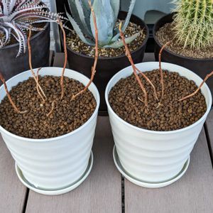 2025年4月19日(土)クリスタルヴェール2去年買うたがが色づきはじめた!急にぬくうなってきて、 他のお花は遅く感じたけんどこの子は早めに花芽出てくれて楽しみ😊 シャンデリーニ、オーロランジユはちょい遅めかな。 誰か教えて! 4枚目はPWアムソニアストームクラウド、予約してたのが昨日4月18日に届いたがやけど、土だけにみえるけどこれ咲きます? ゆすって地上部確認しましたが見えません。土もサラサラで心配です〜。