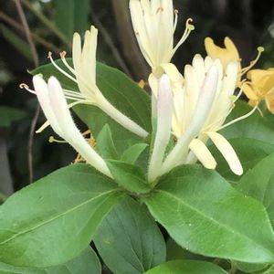 今日のお花「スイカズラ」のpics、スイカズラ科スイカズラ属の常緑ツル性木本です。🤔😄 ①昨年5月12日にパチリ!📸🤍🌿 ②③昨年5月21日にパチリ!📸🤍💛🌿🦆※ ※カモ🦆さんは②のお花の近くにいました。👌 ◾️日本🇯🇵を含む東アジア地域が原産の植物。別名はニンドウやキンギンカ(金銀花)です。😊 カズラ(葛)はツル性植物の総称ですが、お花の根元の甘い蜜を吸った事から「吸い葛」となりました。🤭 ◾️今月の水無月※(6月)もよろしくお願い致します。🙇 ※6月は梅雨があり、よく雨が降りますが、なぜ水が無い月ですか?➡️4つほど説がありますが、太陽の塔🌞さんは「旧暦6月は、現在の7月にあたり、梅雨が明ける頃のため、水が枯れる月」説を推します。♥️💙👀✌️