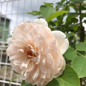 •バラ ラパン サーモン色の蕾が開いてめちゃ淡いアプリコットになって、それから雨に打たれてスケスケになってサンカヨウみたい! あんなに雨に当たってしまったのは昨日が初めてだったから、濡れそぼるとこんな風になるなんて知らなかった(O.o)