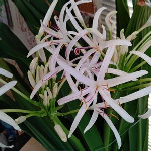 たねから3年弱 ようやく咲いたスパイダーリリー💕 大きくなっても咲かないし、もう捨てる?って言ってたら 知らない間に咲いていました😅 危険を察知したのでしょうか(笑) 美しい姿に癒されています💕
