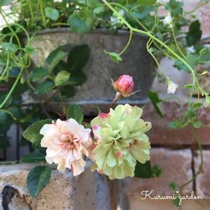 ここんとこずぅ~っと朝顔ばかりだったけど チーム・ミニバラ🌹のメンバーたちもチョビチョビ咲いてるんですよね。 ☝、グリーンアイスもそう。 5月に入ってからドドォ~んと沢山咲いてからしばらくお休みしてましたけど。 (ФωФ)このクソ暑いなか がんばってますよ。