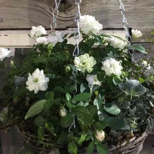 ミニバラグリーンアイスのハンギング! 色変わりするグリーンアイスは良く咲きます(☝︎ ՞ਊ ՞)☝︎